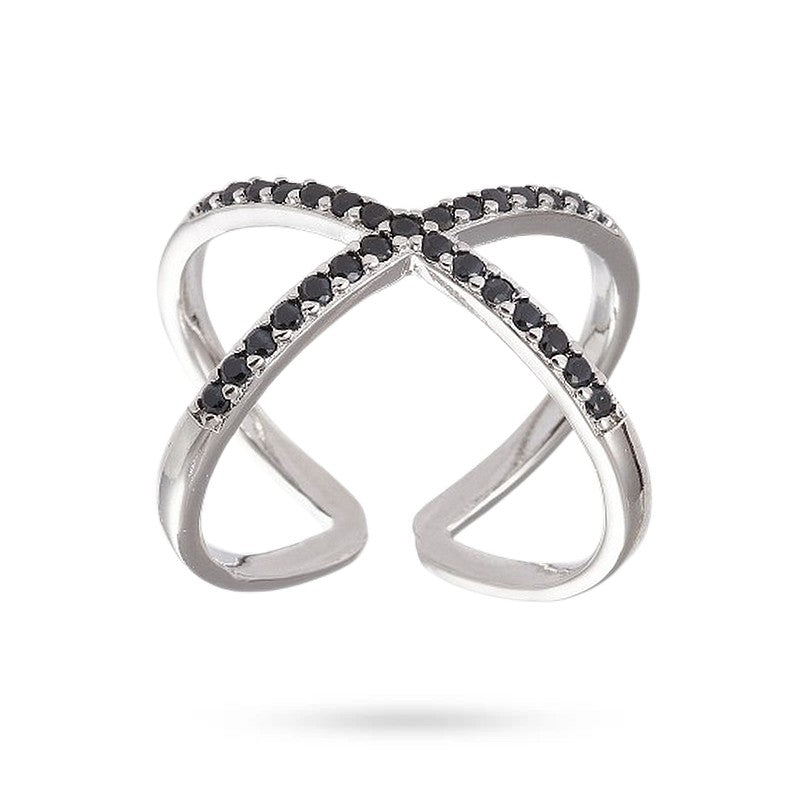 Bague femme réglable entrecroisée diamants CZ noir sertis