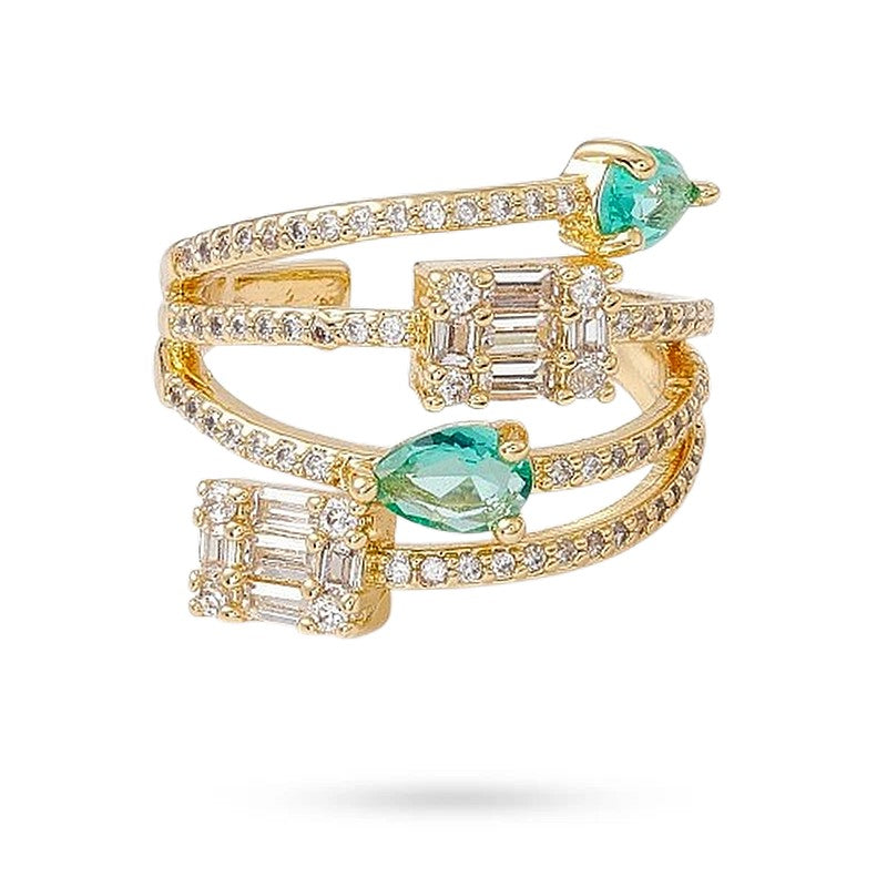 Bague femme réglable larme avec zirconiums blanc et vert sertis