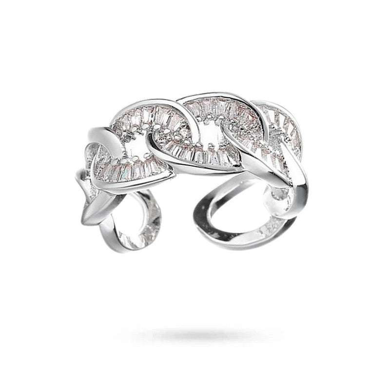 Bague femme réglable maille gourmette zirconiums sertis