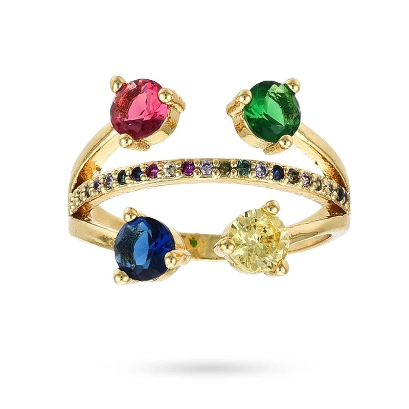 Cette bague réglable pour femme présente une superbe multitude de zirconiums colorés sertis de manière élégante. Avec cette bague, vous pouvez ajouter une touche de couleur et de brillance à n'importe quelle tenue. Fabriquée avec expertise, cette bague est un choix parfait pour les occasions spéciales ou pour un usage quotidien.