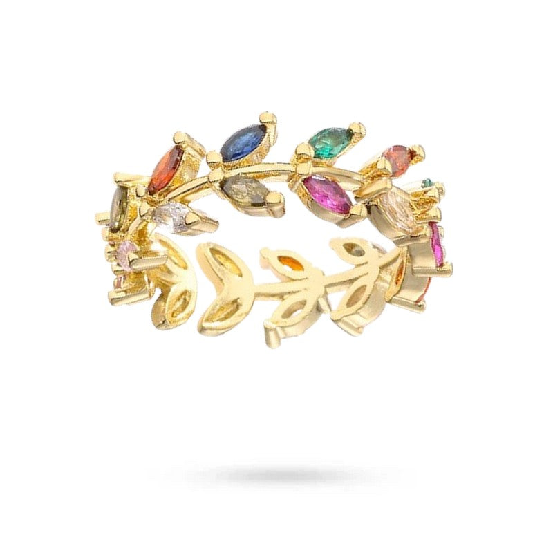 Bague femme réglable pétales de fleur ornée de zirconiums couleurs sertis