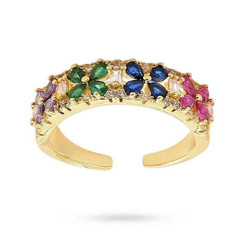Bague femme réglable zirconiums couleurs sertis