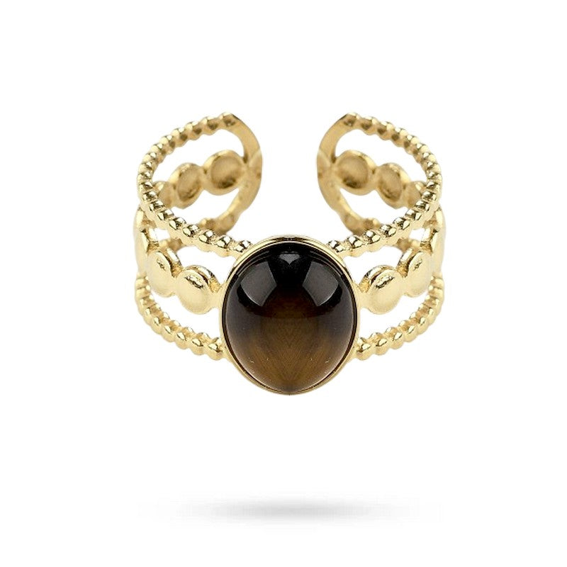 Bagues pour femme acier inoxydable 3 rangs pierre naturelle œil de tigre