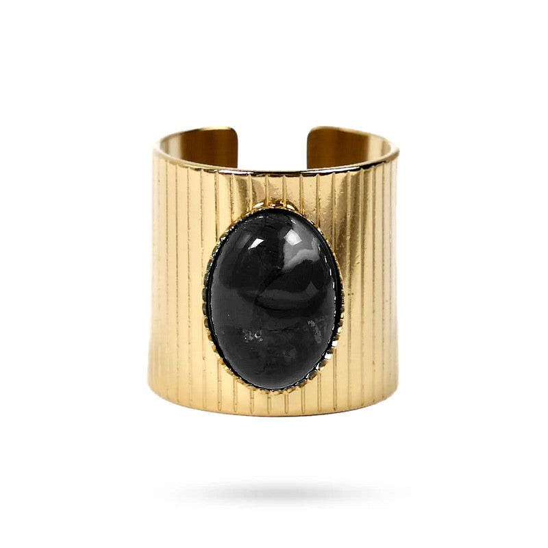 Bagues pour femme acier inoxydable Eva pierre naturelle agate noir