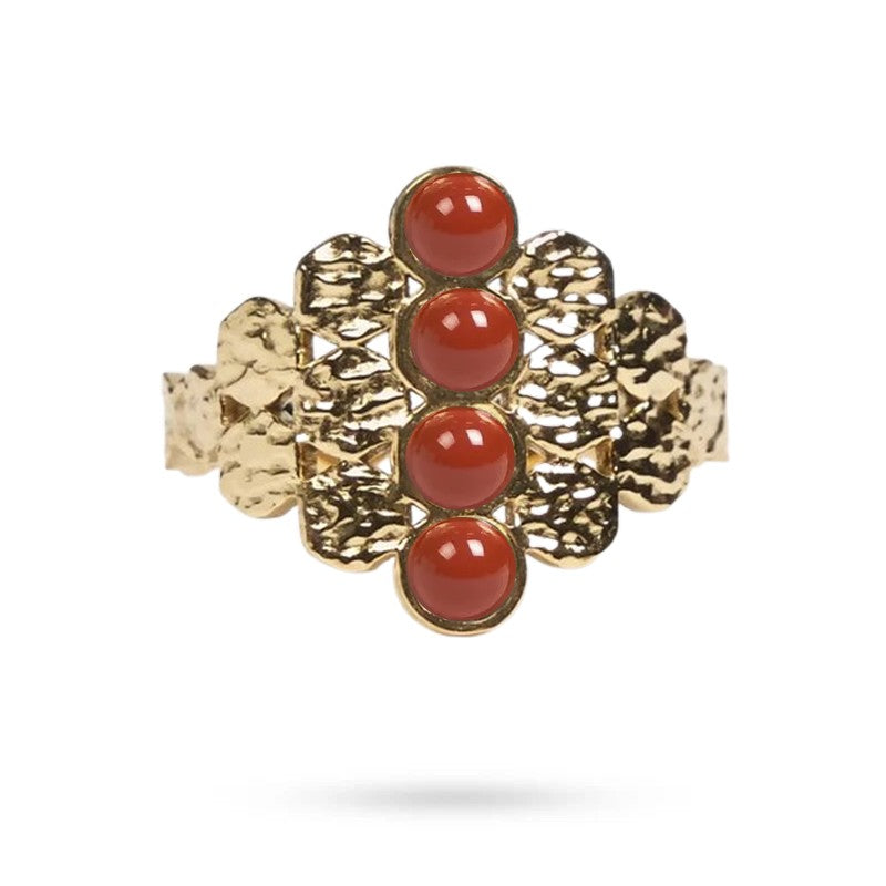 Offrez-vous une touche de beauté naturelle avec notre collection de bagues pour femme en acier inoxydable Flavie. Chaque bague est ornée de quatre pierres naturelles jaspe rouge, apportant une énergie positive et une touche de couleur à votre look. Faites sensation avec ces bagues uniques et élégantes !