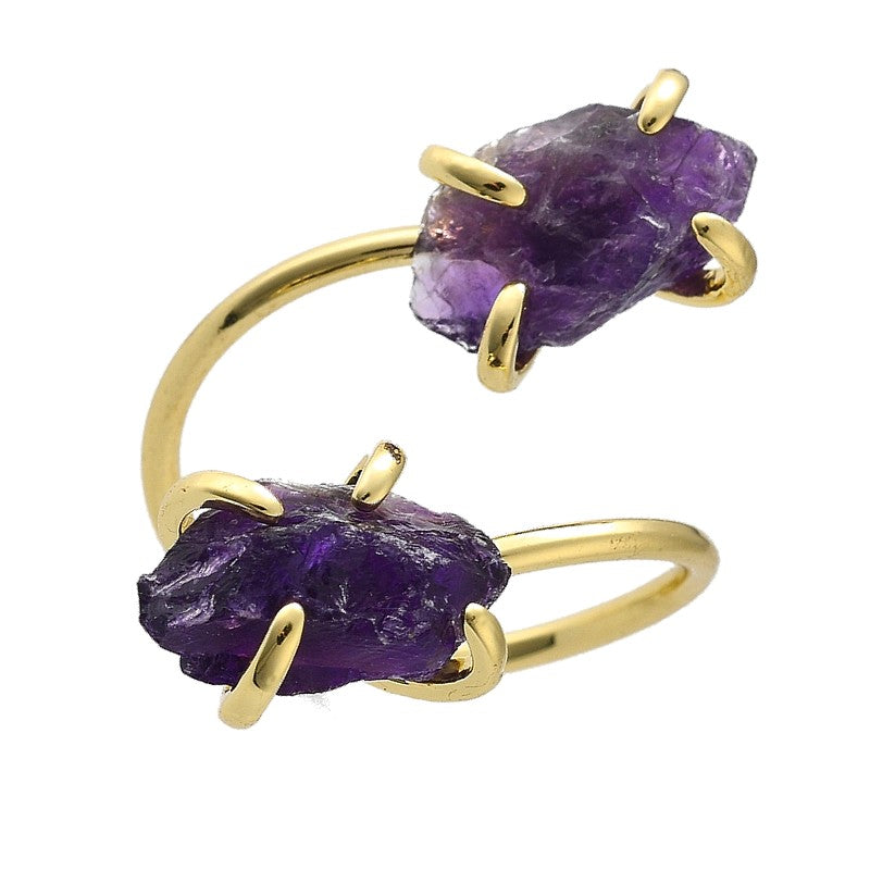 Bagues pour femme acier inoxydable pierre naturelle améthyste