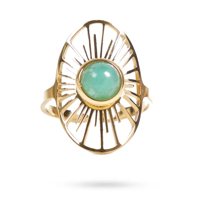 Bagues pour femme acier inoxydable soleil pierre naturelle amazonite