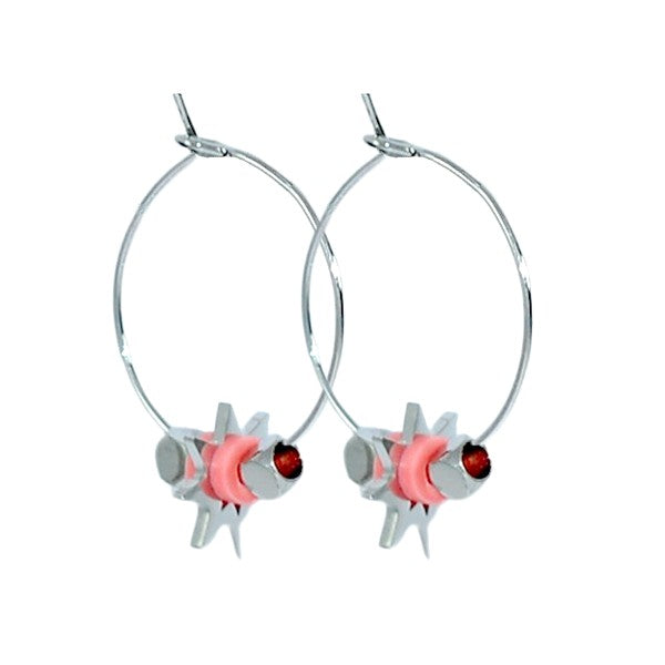 Boucles d'oreilles acier inoxydable Créoles étoile pierre rose
