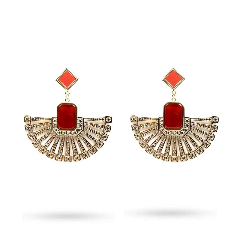 Boucles d'oreilles acier inoxydable Simone pierres naturelles agate rouge