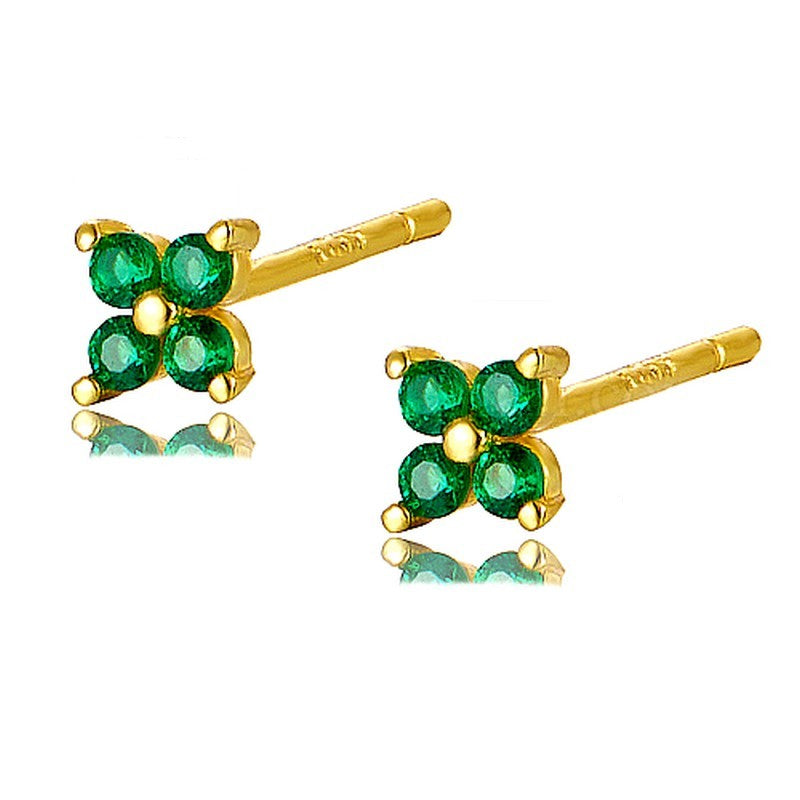Boucles d'oreilles argent 925 or fleur diamant CZ vert