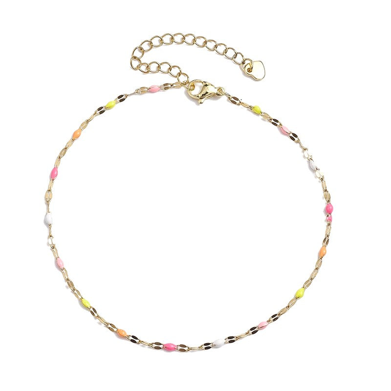 Ajoutez une touche glamour et élégante à votre look avec cette chaîne de cheville en acier inoxydable. Les maillons émaillés ajoutent une note de couleur et de texture à votre pied tout en restant durable et résistant à l'usure. Parfait pour toutes les occasions, cette chaîne de cheville sera un ajout essentiel à votre collection de bijoux!
