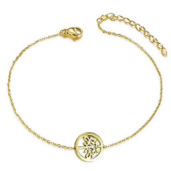 Magnifique chaine de cheville en Acier 316 doré, avec le symbole de l'arbre de vie pour motif.