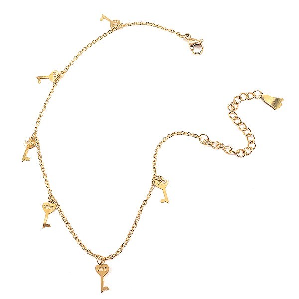 Magnifique chaine de cheville en Acier 316 doré accompagnée de ses petits clés ciselé love