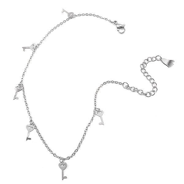 Magnifique chaine de cheville en Acier 316 argenté accompagnée de ses petits clés ciselé love