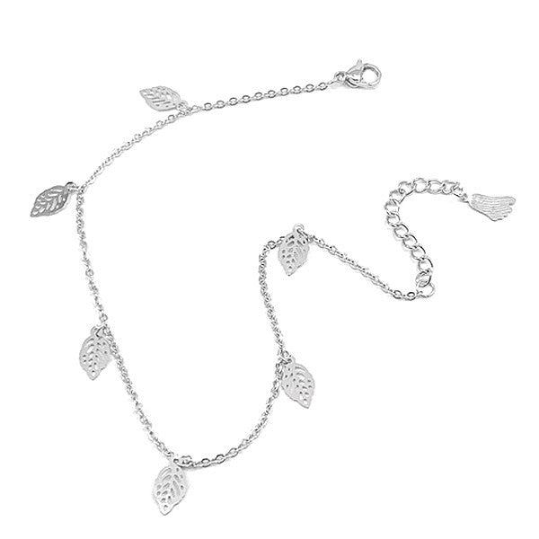 Magnifique chaine de cheville en Acier 316 argenté accompagnée de ses petites feuilles