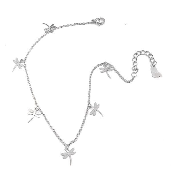 Magnifique chaine de cheville en Acier 316 argenté accompagnée de ses petites libéllules