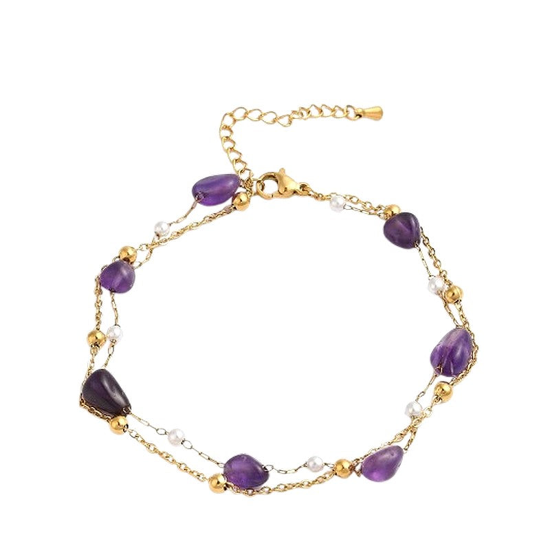 Chaîne de cheville en acier inoxydable double rangs pierres naturelles améthyste