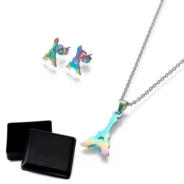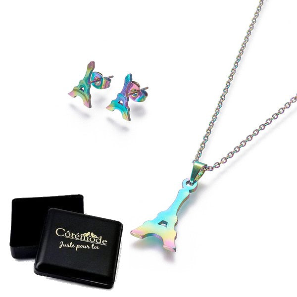 Ensemble collier & Boucles d'oreilles les reflets tour eiffel