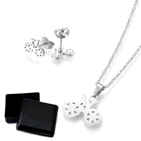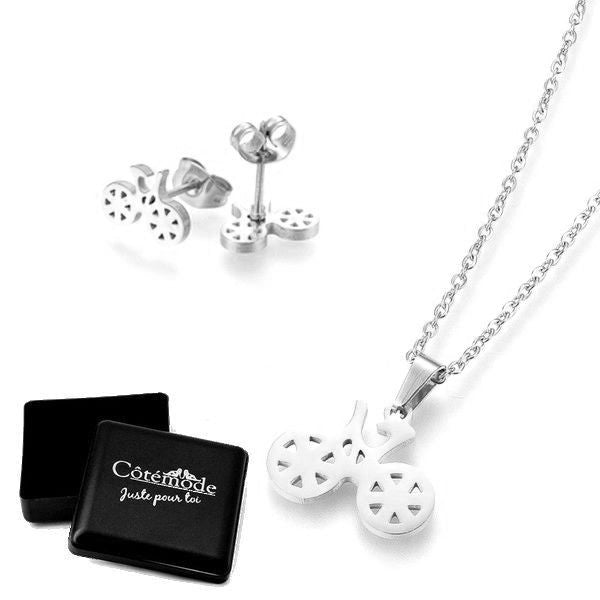 Ensemble collier & Boucles d'oreilles vélo argenté