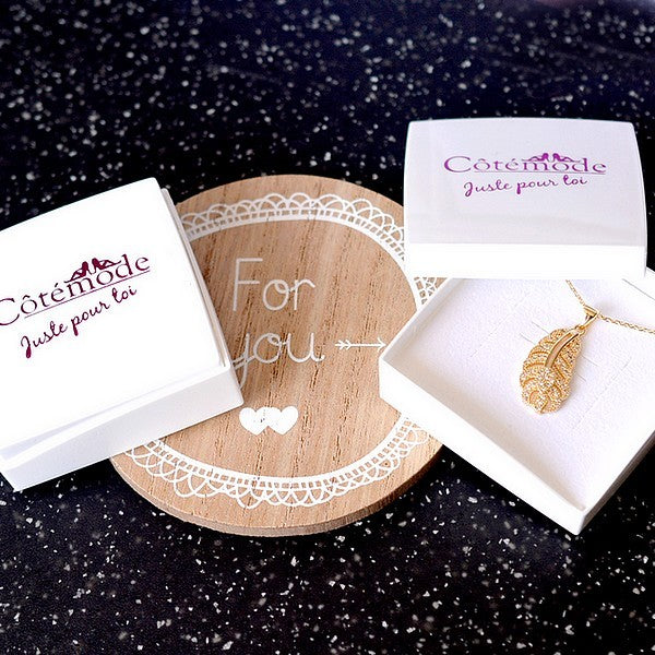 Magnifique collier pour femme, formé d'un pendentif pendant - Feuilles ciselé, ajourés de diamants cz