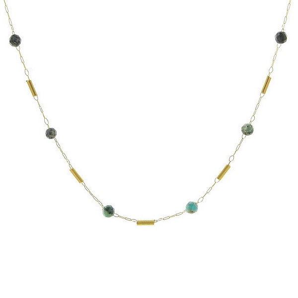 Collier pour femme pierre naturelle acier breloques Turquoise d'Afrique
