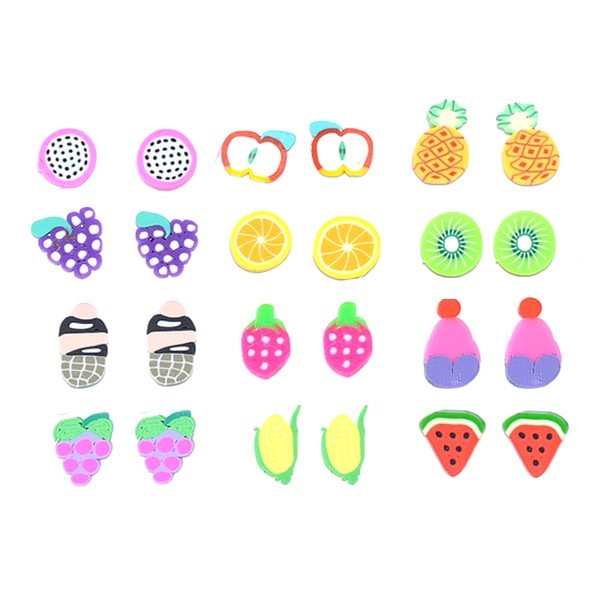 Lot de 12 paires de boucles d'oreilles - Silicone - Fruits