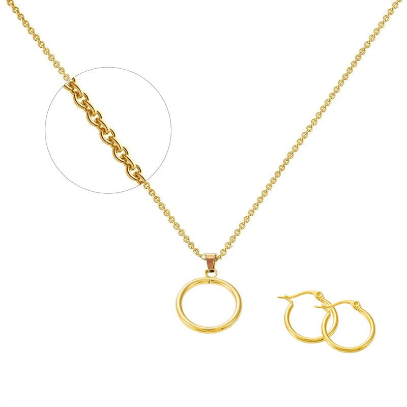Parure collier boucles d'oreilles acier inoxydable - Couleur doré - rond