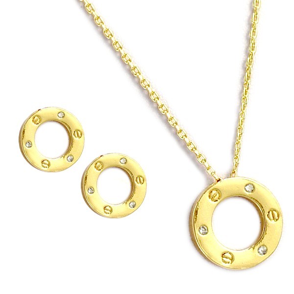 Parure pour femme composée d'un collier pendentif cercles serti de cz blanc et de ses boucles d'oreilles assorties.