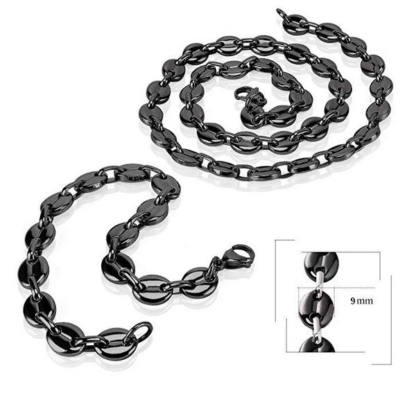 Bijoux pour Homme - Magnifique parure en Acier 316, composée d'un collier maille grain de café de couleur anthracite et d'un bracelet assorti.