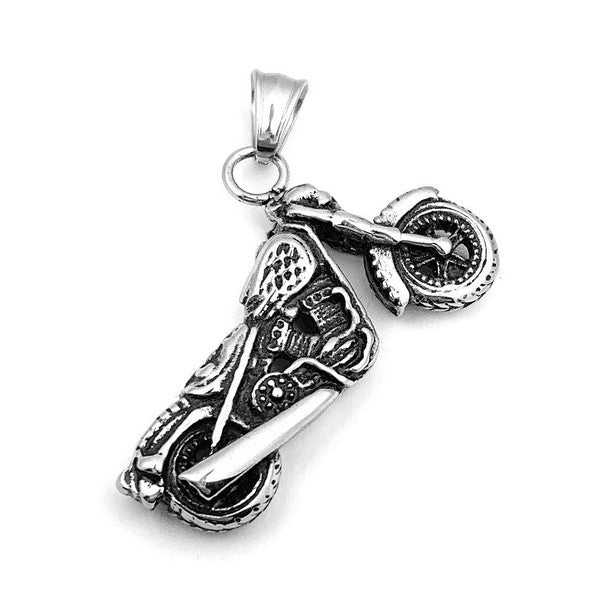 Pendentif acier 316 argenté Gothique Rock ou Biker - Grosse moto