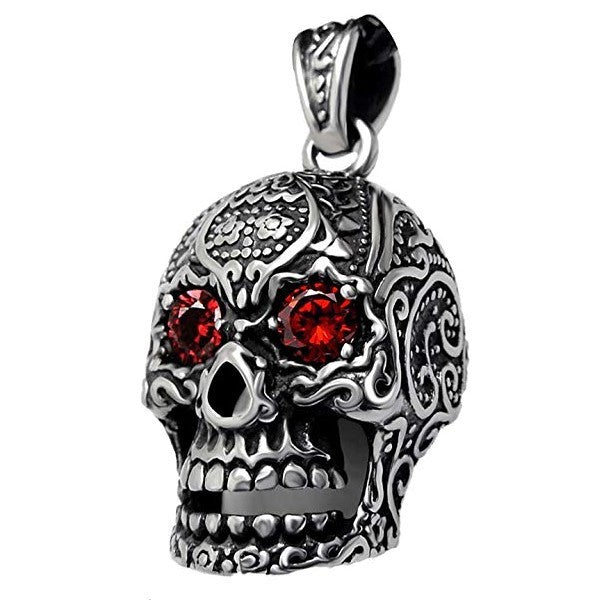 Pendentif acier 316 argenté Gothique Rock ou Biker - Tête de mort mexicaine