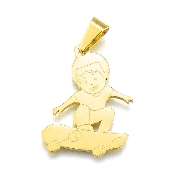 Pendentif acier 316 - Skateur couleur doré